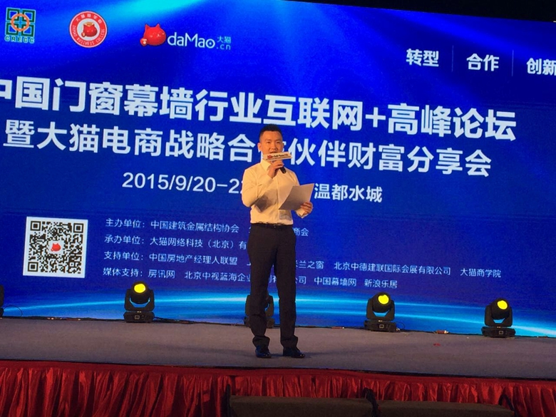 隨著全球趨勢的發(fā)展和政府的大力倡導(dǎo),互聯(lián)網(wǎng)+正如火如荼地席卷所有行業(yè)。如今電子信息化時代,互聯(lián)網(wǎng)+的發(fā)展已經(jīng)有目共睹。2015年9月20日-22日在北京溫都水城,大貓電商與中國建筑金屬結(jié)構(gòu)協(xié)會、全聯(lián)房地產(chǎn)商會共同舉辦了“2015中國門窗幕墻行業(yè)互聯(lián)網(wǎng)+時代高峰論壇暨大貓電商戰(zhàn)略合作伙伴財富分享會”。天辰股份作為合作會員單位,應(yīng)邀參加了此次論壇會。
