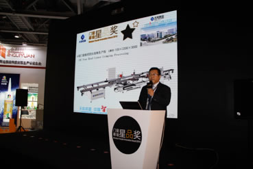 展會(huì)期間,在第二屆中國門窗幕墻年度星品評(píng)選中,天辰股份的數(shù)控四頭組角生產(chǎn)線以其填補(bǔ)國內(nèi)空白的先進(jìn)的技術(shù)及超高生產(chǎn)效率,獲得評(píng)審及專家的一致好評(píng),勇奪“星品獎(jiǎng)”。天辰股份市場部傅旺經(jīng)理在星品發(fā)布會(huì)上對(duì)該設(shè)備進(jìn)行了詳盡的技術(shù)闡述。