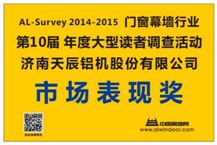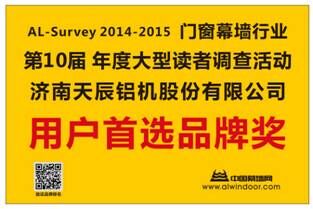 AL-Survey讀者調(diào)查活動(dòng)全稱(chēng):中國(guó)幕墻網(wǎng)年度大型讀者調(diào)查活動(dòng)暨“我最喜愛(ài)品牌”評(píng)選活動(dòng)。(以下簡(jiǎn)稱(chēng)AL-Survey)我司作為設(shè)備領(lǐng)域的領(lǐng)先企業(yè),自上界獲得用戶(hù)首選品牌及市場(chǎng)表現(xiàn)獎(jiǎng)之后,2015年再次憑借“天辰鋁機(jī)”品牌在市場(chǎng)中的優(yōu)異成績(jī),強(qiáng)勢(shì)入圍2015-2016年度第11屆門(mén)窗幕墻品牌榜活動(dòng)。通過(guò)近十萬(wàn)名活動(dòng)參與者的票選,AL-Survey將成為我司年度市場(chǎng)品牌推廣與產(chǎn)品銷(xiāo)售、服務(wù)質(zhì)量的晴雨表。