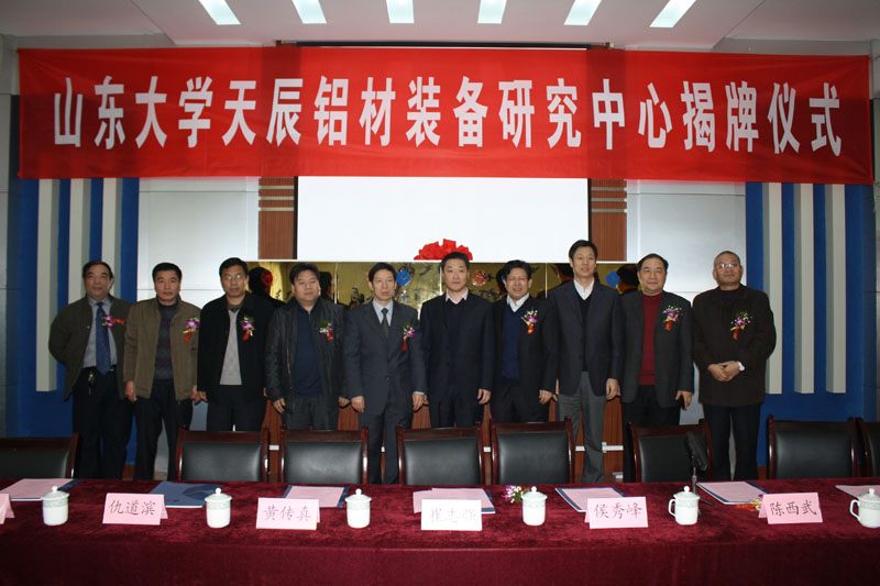 2012年12月26日上午,濟(jì)南天辰鋁機(jī)制造有限公司與山東大學(xué)工程機(jī)械學(xué)院產(chǎn)學(xué)研合作揭牌儀式在濟(jì)南天辰電教室隆重舉行。 出席揭牌儀式的嘉賓有:高新區(qū)管委會(huì)副主任崔志強(qiáng)、高新區(qū)科技局局長陳西武、山東大學(xué)機(jī)械工程學(xué)院黃傳真教授,仇道濱教授,呂