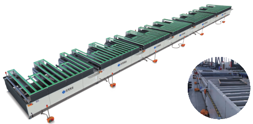 ☆?連接于組角生產(chǎn)線后端,用于組角后窗體的自動傳輸,并可在本輸送線上完成中梃拼裝、安裝膠條、安裝五金、壓條配做,直至包裝入庫的各種工序;