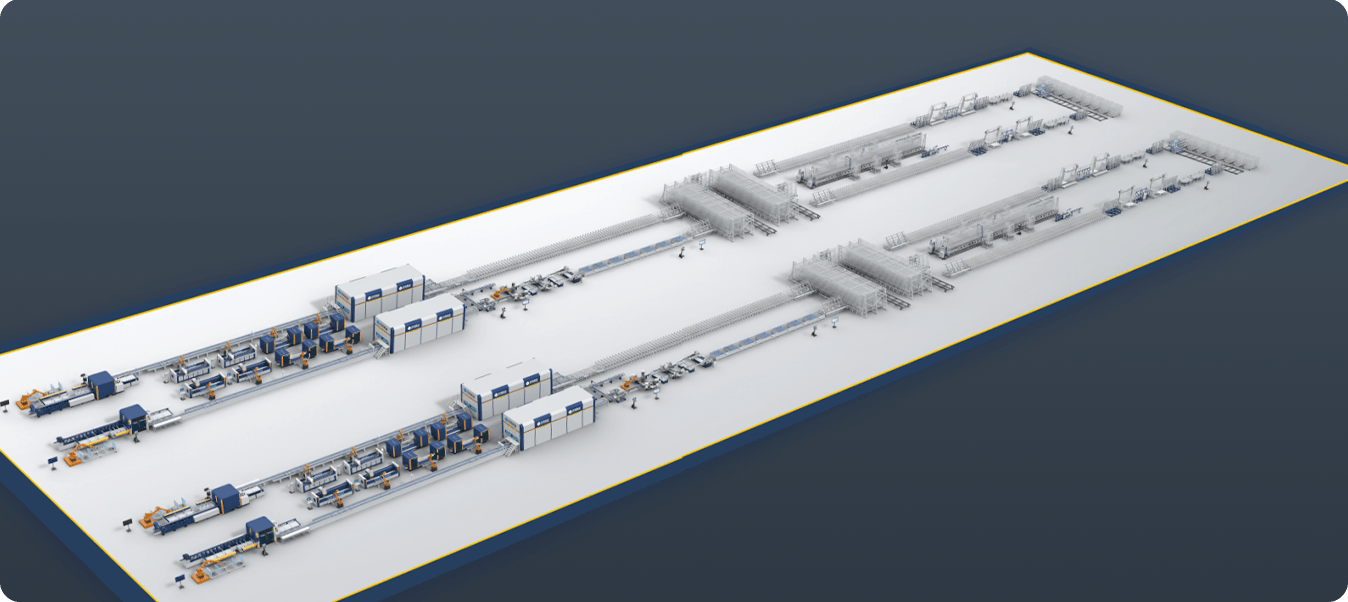 全球領(lǐng)先的超級(jí)門窗智能生產(chǎn)線,實(shí)現(xiàn)了從原材料上線到智能鋸切、激光鉆銑、智能分揀、自動(dòng)齊套、四頭同步組裝、自動(dòng)注膠、鉸鏈孔高效加工、智能RGVIAGV出入庫(kù)、凝膠緩存、門窗組裝調(diào)試、成品包裝等全過程的在線運(yùn)行,并配備了填補(bǔ)行業(yè)空白的智能分揀倉(cāng),自動(dòng)實(shí)現(xiàn)了窗體型材的分揀齊套,做到了全程不落地自動(dòng)流轉(zhuǎn)和數(shù)字化精準(zhǔn)管控。